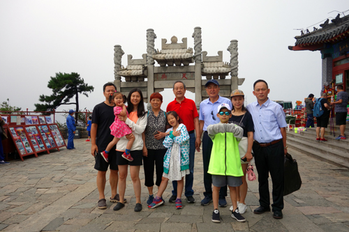 威海雙舉海參總經理李雙舉先生,與其老友——世界名廚協會會員、中國烹飪大師、原人民大會堂管理局餐廳處副處長包令珠先生一行,在雙舉海參泰安總店總經理、山東望意陽海綿城市建設有限公司董事長強克華先生的陪同下,前來泰山參觀游覽。